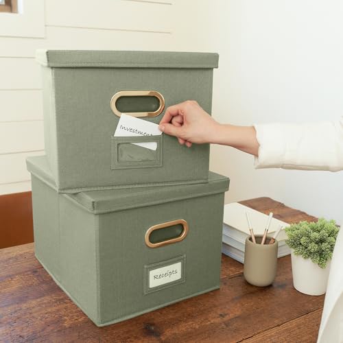 Modern & Decorative: The ZICOTO file folder box in sage linen provides a stylish way to organize all your papers and supplies; Functional features & a beautiful design create the ultimate filing organizer