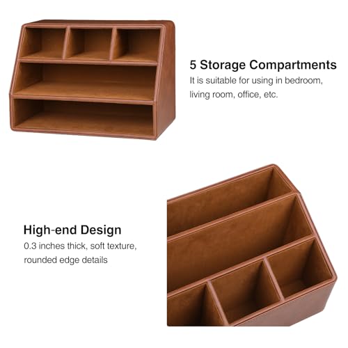 PU Leather Desk Organizer, Luxury Remote Control Holder for Home, Office Desk Accessories Table Caddy Bedside Nightstand Organizer (Brown)