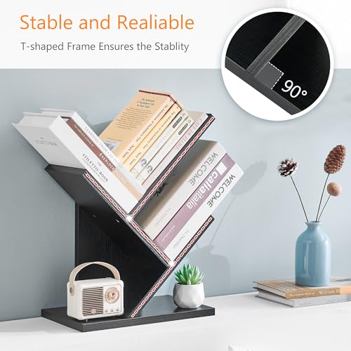 Tajsoon Tree Bookshelf 3 Tier Book Shelves Storage Organizer, Desktop Bookshelf Floor Standing Bookcase Display for CDs/Magazine/Books, Small Bookshelf for Bedroom, Living Room&Office, Black