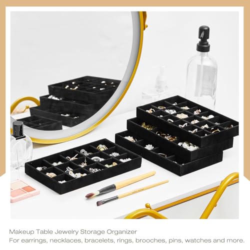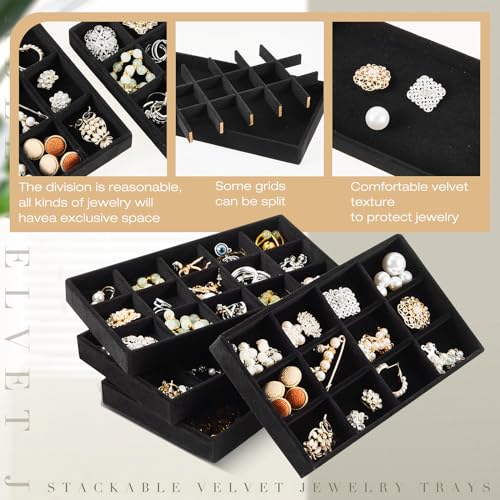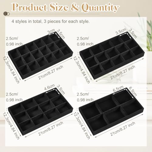 Junkin 12 Pcs Jewelry Tray Velvet Stackable Jewelry Organizer Trays Divided Earring Accessories Storage Containers Box (Rose Red)