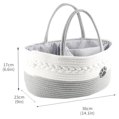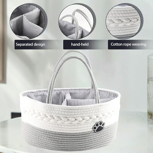 5.100% Cotton Exterior, Polyester Lining: The pet diaper organizer caddy is made from premium cotton rope that is skin-friendly and safe for your baby. This dog and cat grooming tote bag is the perfect gift for someone who have pets at home. This versatile pet grooming tote can be a fantastic gift for dog lovers, pet groomers on Christmas, Thanksgiving Day or other festivals.