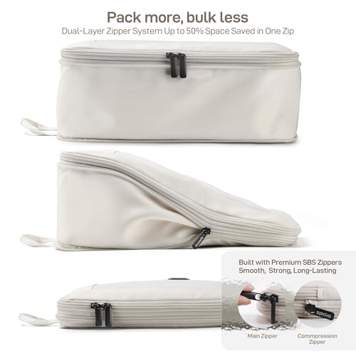 EPICKA TripCozy Compression Packing Cubes – 4 Set Durable Travel Organizer Bags with Mesh Top, Expandable Travel Accessories for Carry on, Luggage, Suitcase, Backpack (Beige)