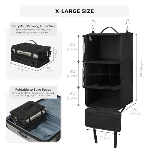 GRANNY SAYS Hanging Packing Cubes for Travel, Large Portable Hanging Suitcase Organizer, Foldable Compression Luggage Organizer Bags for Clothes, Carry on Closet Suitcase, XL-Black Travel Shelves