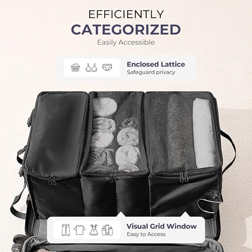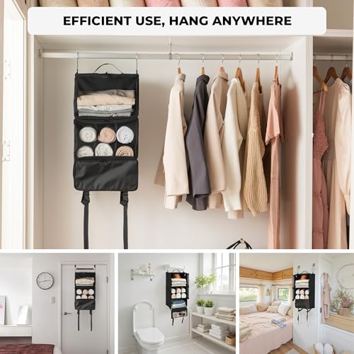 GRANNY SAYS Hanging Packing Cubes for Travel, Large Portable Hanging Suitcase Organizer, Foldable Compression Luggage Organizer Bags for Clothes, Carry on Closet Suitcase, XL-Black Travel Shelves - Image 5