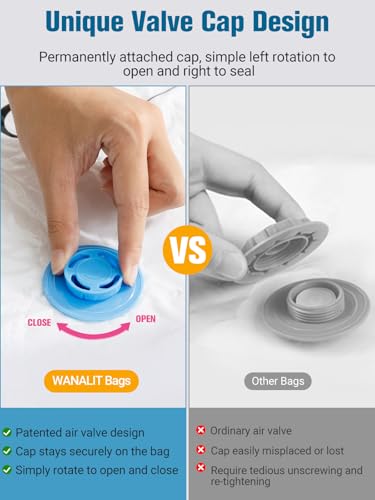 【Unique Valve Cap Design】Our innovative valve cap design sets us apart from other vacuum bags. Unlike standard valve caps that require tedious unscrewing before pumping and re-tightening afterward – not to mention being easily misplaced. our revolutionary design features a permanently attached cap that stays securely on the bag. With simple left rotation to open for pumping and right rotation to seal after use, this hassle-free mechanism eliminates the need for removal while ensuring you’ll never lose the cap